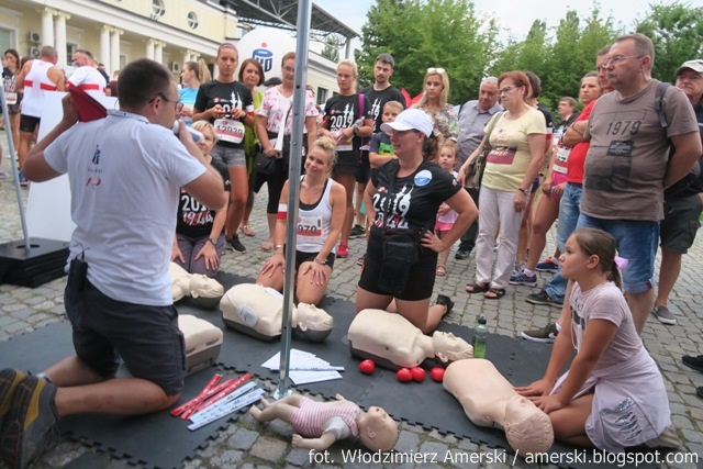 Jako gdańszczanin zwróciłem baczniejszą uwagę na tą zawodniczkę. Jeszcze na długo przed startem, na jednym z kilkunastu stoisk sponsorskich rozmieszczonych na terenie Ośrodka Polonia i zlokalizowanym przy ul. Konwiktorskiej miasteczku biegowym, zauważyłem ją jak na ludzkich fantomach próbowała swoich sił udzielenia pierwszej pomocy,
