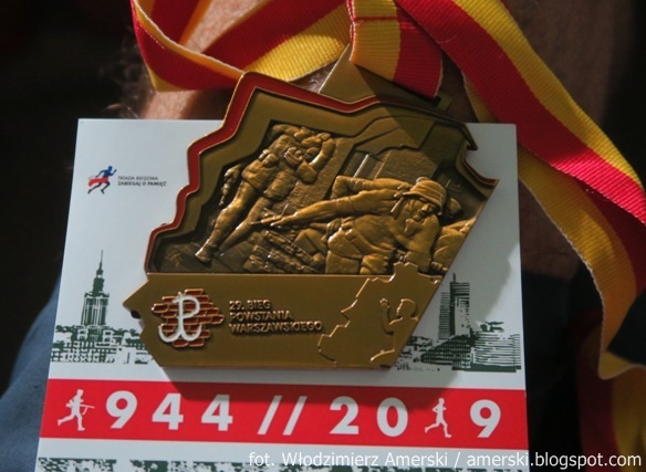 Po minięciu linii mety też udało mi się w tym tłumie wypatrzeć Anetę Jaroszczyk, która cieszyła się z otrzymanego medalu za ukończenie biegu na 5 km. Bieg Powstania Warszawskiego wchodzi w skład Warszawskiej Triady Biegowej. Pozostałe dwa wydarzenia to Bieg Konstytucji 3 Maja, który już się odbył i Bieg Niepodległości, który odbędzie się 11 listopada.